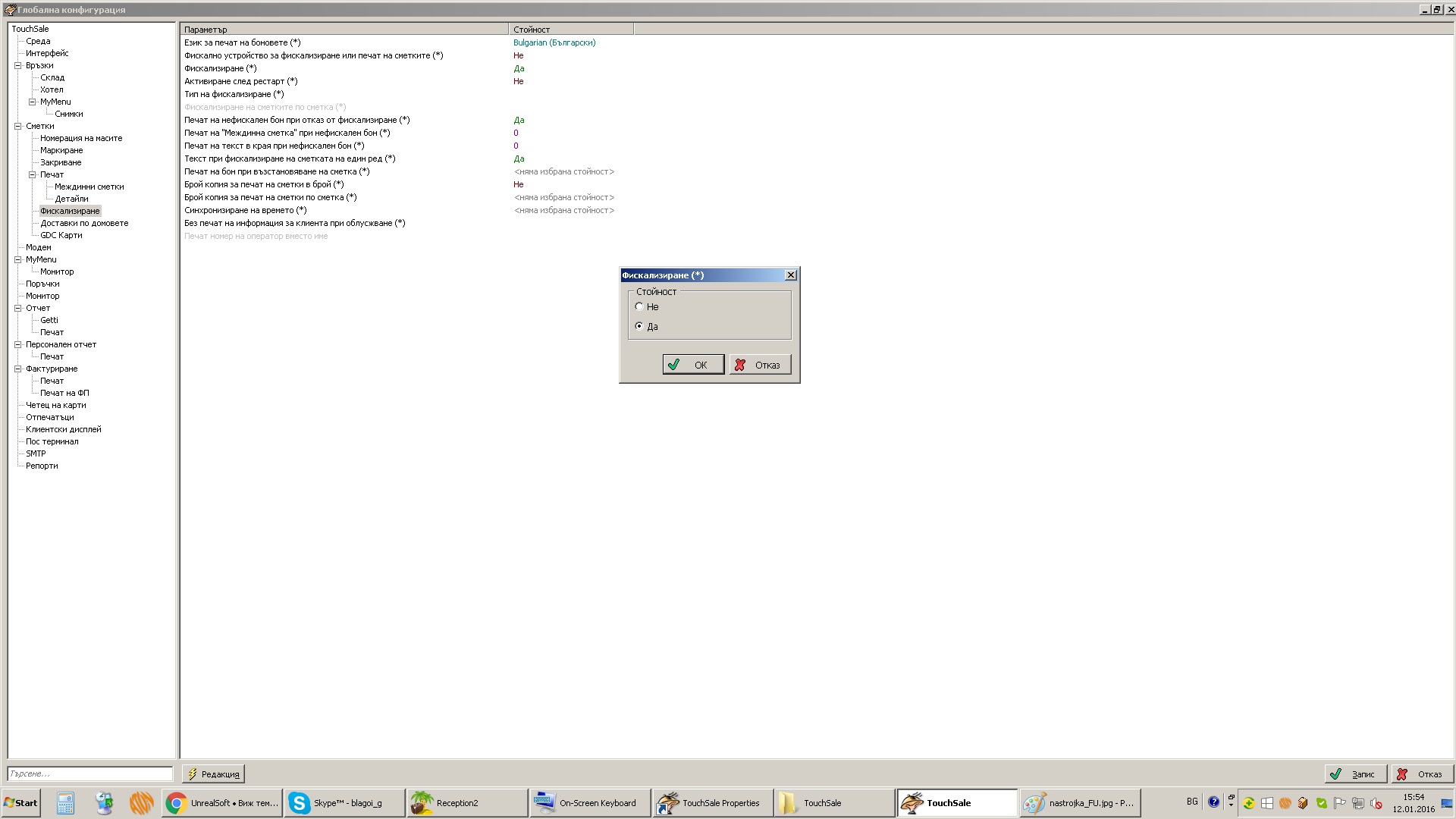 В глобална конфигурация в секция фискализиране са разместени диалоговите прозорци за различните настройки, съответно не може да бъдат зададени коректни стойности. Версия 1.8.224.478