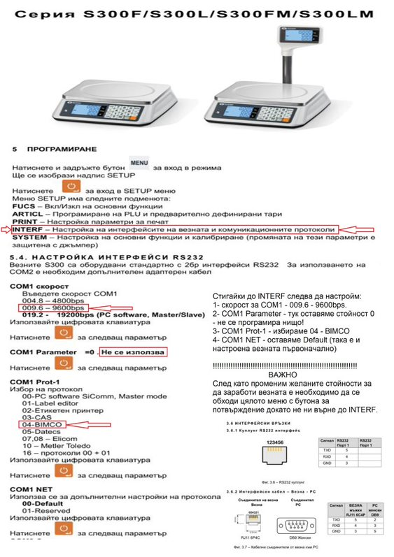 Везната еликом трябва да й се смени скоростта и протокола зa работа. За целата с бутон меню се влиза в режим интерфейс. Потвърждава се с ентер или бутона за изключване на везната. В първия прозорец променяма скороста от 19200 на 9600 потвърждаваме с ентер за следващ параметър него не го пипаме и потвърждавеме отново с ентер следва Протокола него го променяме на 4 за работа с бимко потвърждаваме. Останлите параметри не ги пипаме само потвърждаваме с ентер. Трябва да стигнем до Interf за да се запазят настройките. След това в Атон или тъчсейл избираме протокол за везна Еликом S200 настройваме ком порт и задължително натискаме приложи и тест. Ако всичко е нормално ще получим резултат с грамаж.