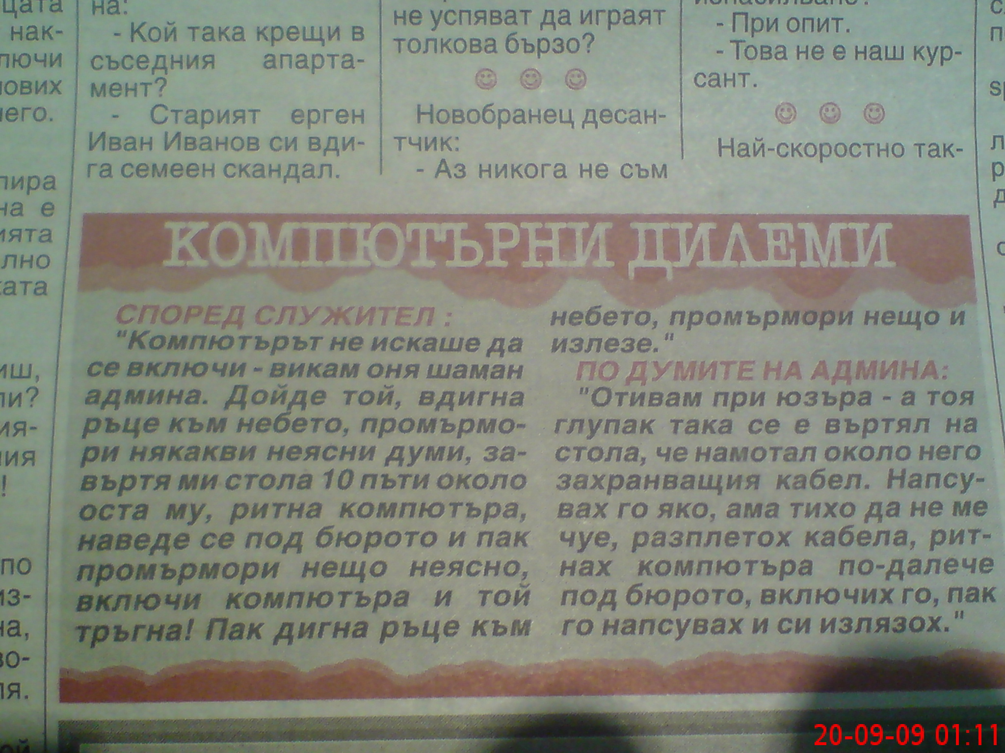 Моля ви, като прочетете тема пишете по едно мнение да не ви търся по icq/телефон после ...
